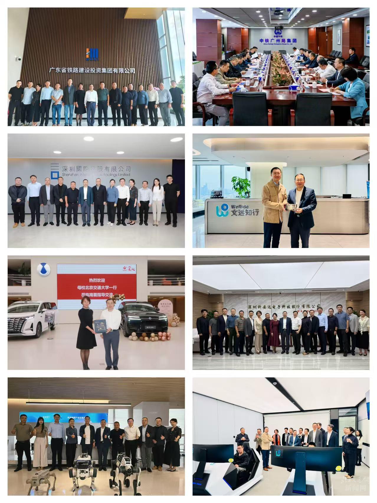 在深圳,施先亮带队走访了战略合作企业深圳国际控股有限公司、校友企业深圳科安达电子科技股份有限公司、启迪知行(深圳)有限公司。在广州,走访了广东省铁路建设投资集团有限公司、中铁广州工程局集团有限公司、校友企业广州南菱汽车股份有限公司、校友企业文远知行公司等多家单位。分别围绕智慧物流及大模型构建、集成电路与先进制造、智能建造与重大工程科技攻关、自主智能无人系统、数字孪生技术与智慧城市建设、低空经济与空天信息技术、新能源技术及多场景融合应用等议题进行了务实交流与需求对接。
